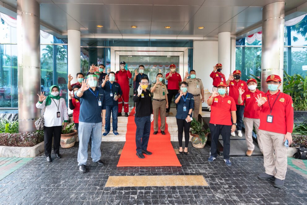 Setelah itu Bapak Ghazmadi dan tim, bersama dengan Bapak David Chendra (selaku Chief Manufacturing Officer Enesis Group) berkeliling untuk melihat sekilas penerapan protokol kesehatan yang di terapkan oleh Enesis Group. Penerapan protokol kesehatan dilaksanakan mulai dari bilik disinfektan sebelum masuk kerja, cek suhu badan, disediakan Hand Sanitizer di pintu-pintu masuk, penyemprotan disinfektan di area kerja dan sekitarnya. Selain itu juga megecek kelengkapan fasilitas seperti Kantin, Klinik dan lainnya.