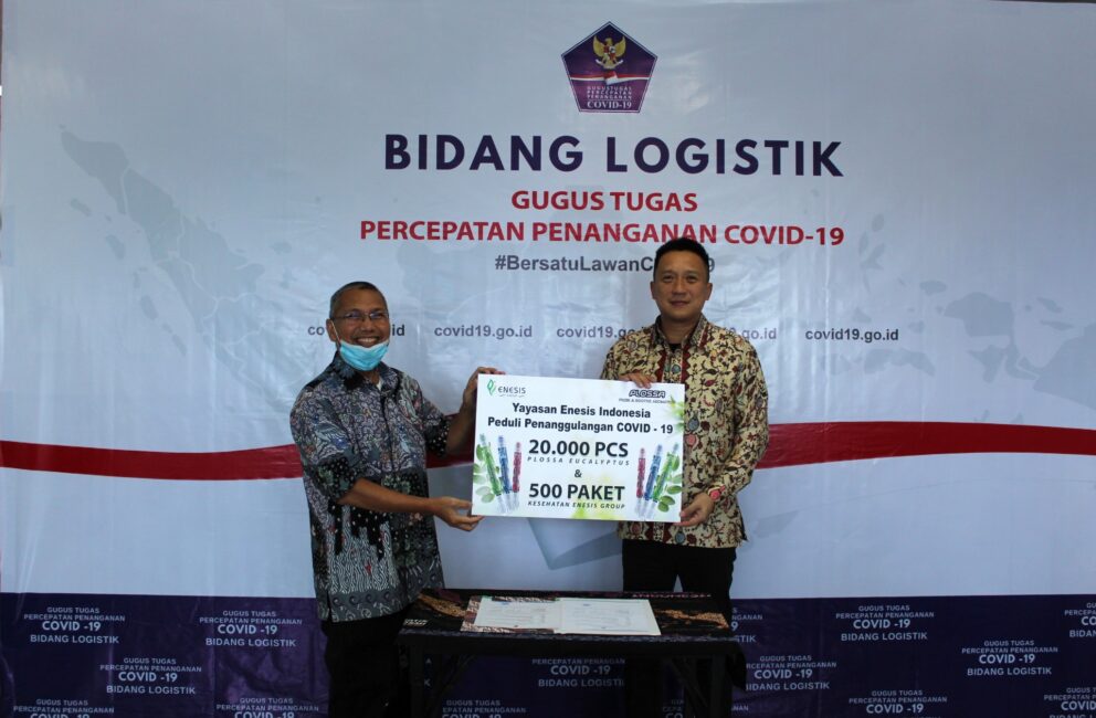 Enesis Group selaku produsen Plossa Eucalyptus melalui Yayasan Enesis Indonesia, memberikan bantuan berupa 20.000 buah Plossa Press & Soothe Aromatics dan 500 Paket Kesehatan Enesis Group kepada Badan Nasional Penanggulangan Bencana di Graha BNPB, Jakarta Timur. Bantuan ini diserahkan oleh Ryan Tirta selaku Chief Sales & Marketing Officer (CSMO) Enesis Group dan diterima langsung oleh Direktur Pengelolaan Logistik dan Peralatan, Ir. Ibnu Asur, MM.