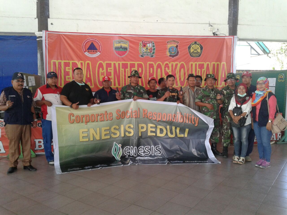 Untuk meringankan beban para pengungsi di Sinabung, Enesis Group melalui program “Enesis Tanggap Bencana” mendistribusikan bantuan berupa 200 helai selimut dan 6.000 Proman botol kepada para pengungsi Sinabung dan petugas yang berjaga. Dalam mendistribusikan bantuan yang dibagi menjadi 2 tahap tersebut, tim Enesis Group cabang Medan bekerja sama dengan Palang Merah Indonesia (PMI) dan relawan setempat.