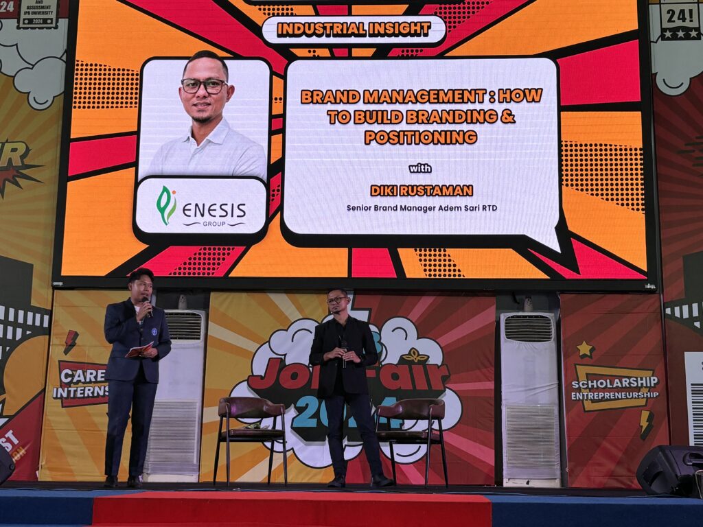 Not only opening a booth, Enesis Group had the opportunity to provide Industrial Insight presented by Diki Rustaman as Senior Brand Manager of Adem Sari RTD. Apart from that, Enesis also presents Exclusive One-on-One Coaching guided by two professionals in their field, namely Muhammad Yusuf Affandi, OD. Talent, Performance & Change Management Dept. Head – HRGA and RM. Ardiantara, HR Service, Rewards & PR Dept. Head. This exclusive coaching session provides the opportunity for participants to get to know Enesis Group more closely, explore career opportunities, and get professional development tips at the company.