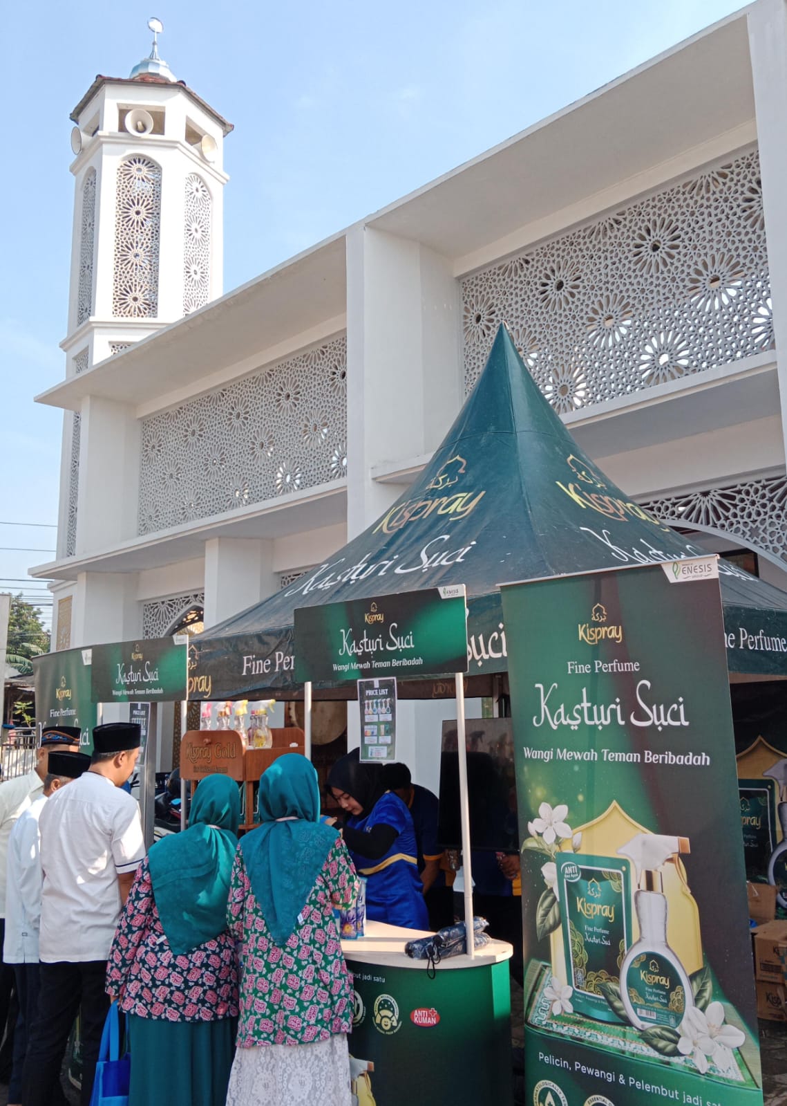 This series of activities was held on September 13, 2025, at the Baitul Mu’Min Grand Mosque in Jatiasih, Bekasi, and continued on September 20, 2025, at the Al Furqon Grand Mosque in Pondok Benda, Pamulang, Tangerang. Kispray’s presence was positively received by the congregation, who experienced the distinctive fragrance of Kasturi Suci during their worship service.