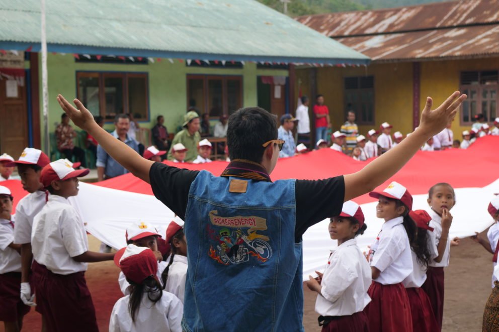 Proman with Mario Iroth conducted a Charity Ride on August 17, 2019. There, he along with several other touring teams, as well as a team from Mustika Ende’s reading house conducted social activities by giving donations of bags and stationery to SDK Wolondopo 1 students. That, they visited Illa One Nua Detupau Reading Park with a variety of learning activities and celebrated the Republic of Indonesia Anniversary with a 20-meter long flag.