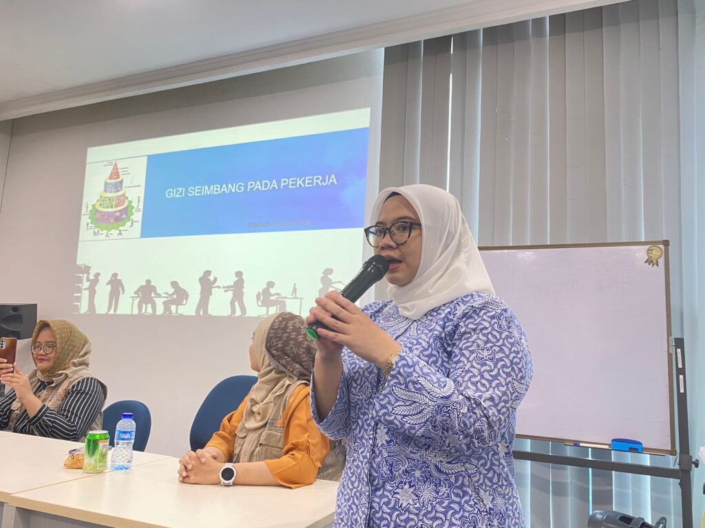 In the Health Talk Nutrition education, it is explained about calculating optimal nutritional status, workers’ daily nutritional needs, workers’ food standards, meal frequency, and examples of food menus to achieve appropriate nutritional intake. This was conveyed directly by the resource person, namely Khairnda Hardianti, S.Gz.