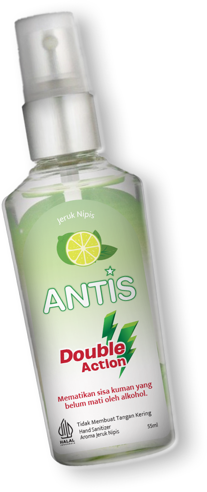 Antis contains active alcohol 70% that kills 99% germs such as E. coli and S.aureus, Diarrhea, Flu, ISPA, Typhus, Flu Burung, MERS, SARS, TBC in 4 seconds.